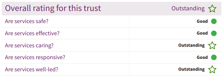 We are delighted to confirm that the CQC rated the services delivered by our Trust as 'Outstanding'.